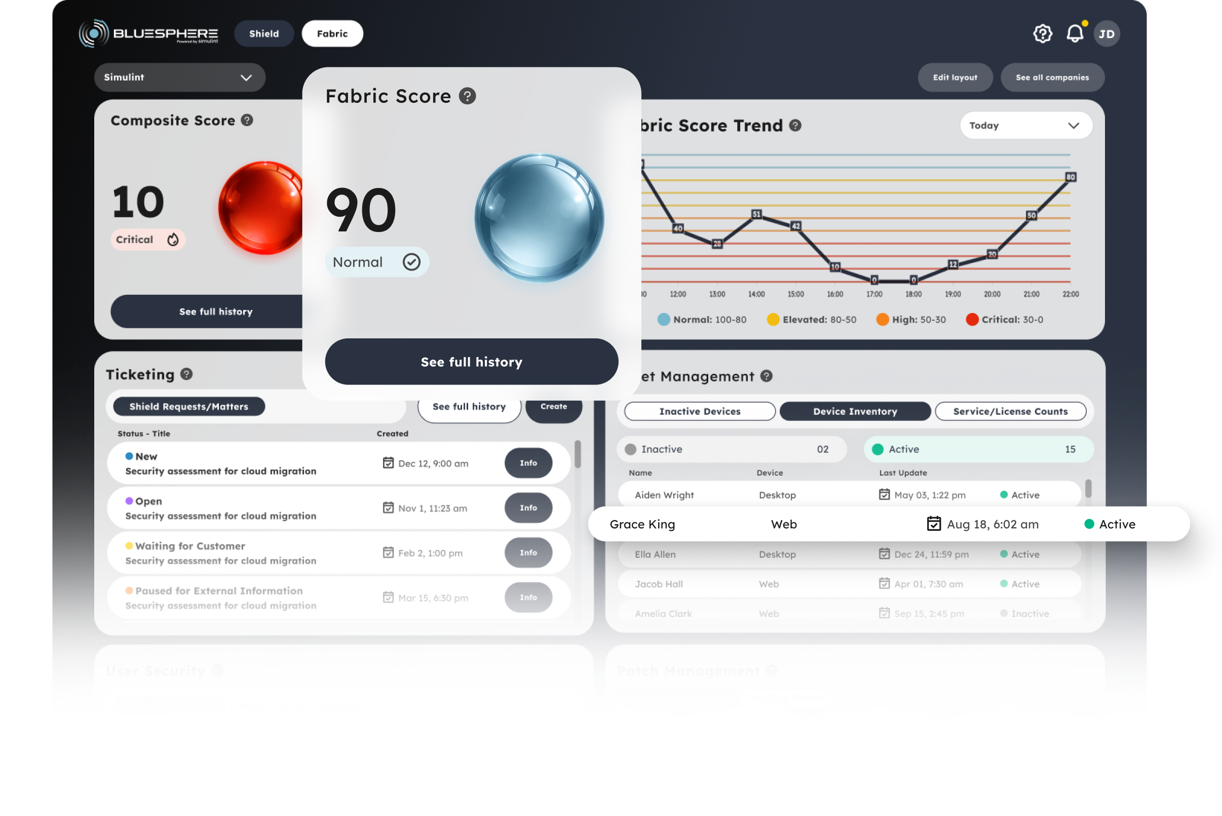 BlueSphere Fabric centralizes patching, vulnerability management, backup, and endpoint protection into a structured, continuously managed operation—aligned with industry standards.